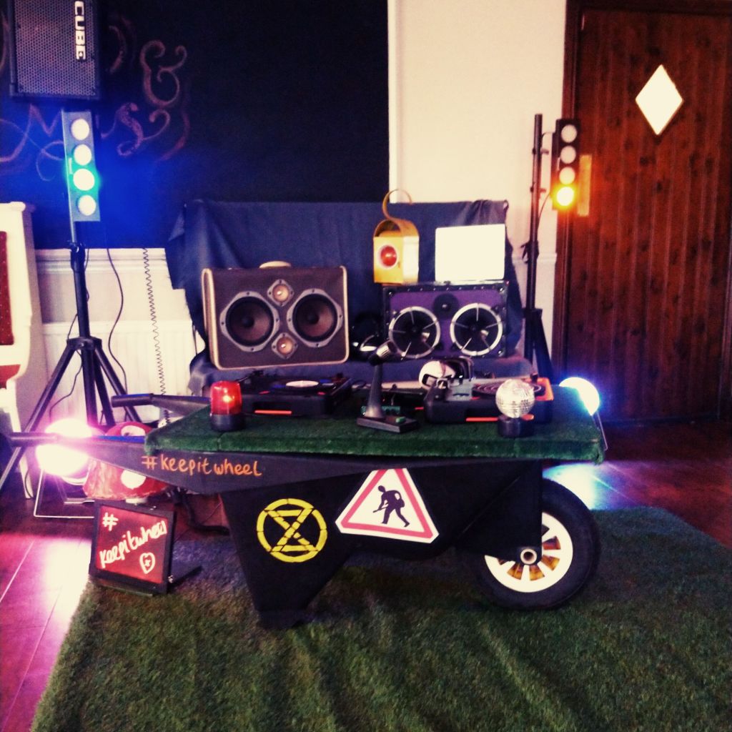 We believe having a great time shouldn’t cost the earth so we created what’s possibly the worlds most environmentally friendly mobile disco Tip of the Pops “a disco with no carbon footprint”. A solar-powered wheelbarrow disco made from reclaimed materials spinning classic 7″ vinyl records that were destined for landfill. It’s Reduce, Reuse, Upcycle & Boogie!